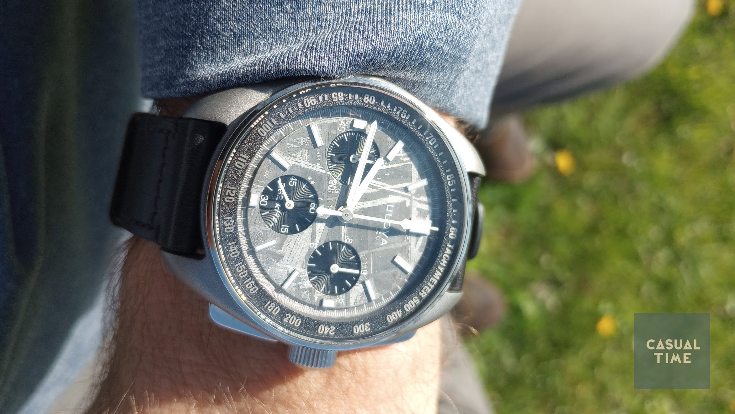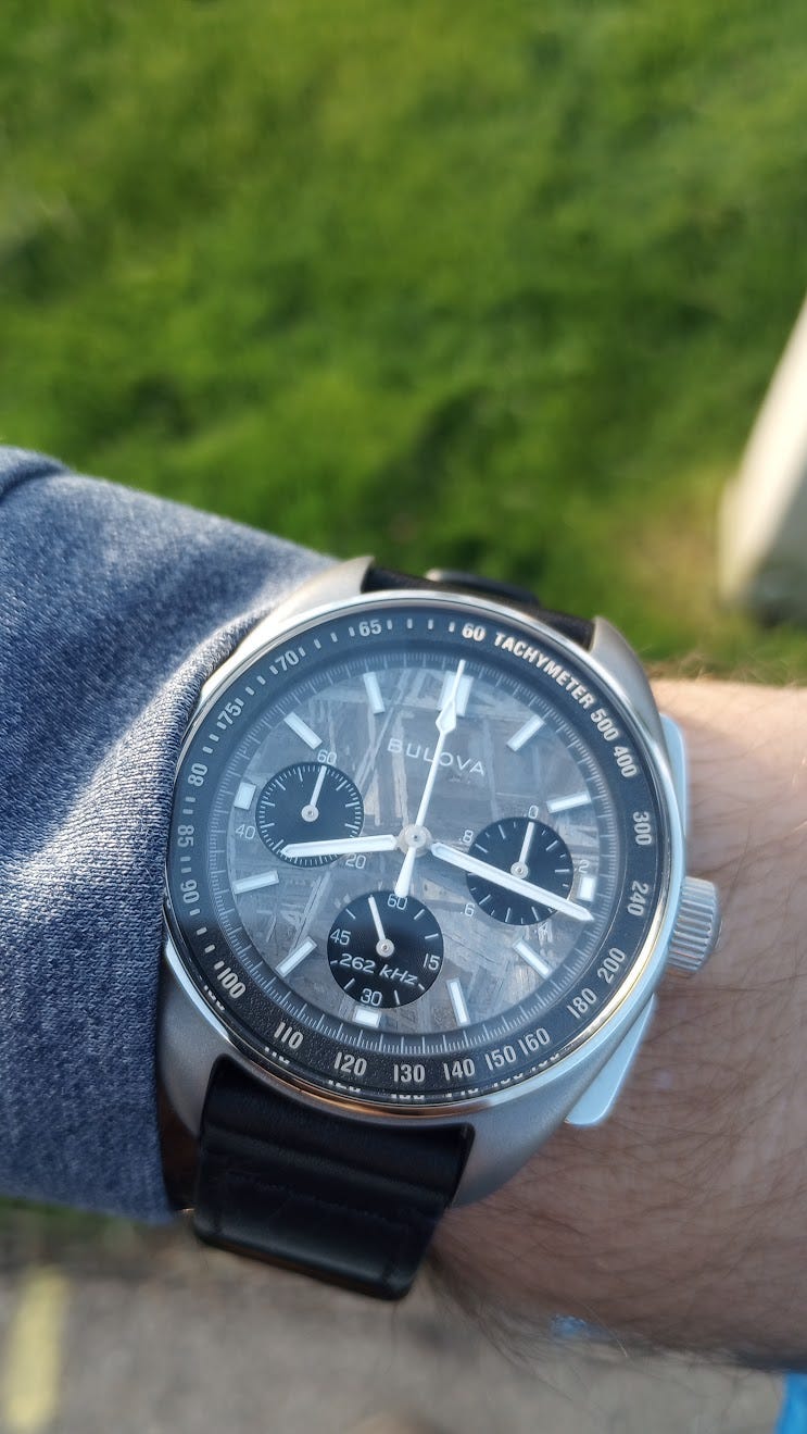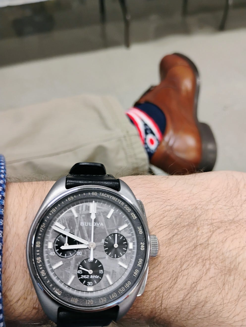 I had a modest watch budget that I had planned for and Fashion Time, which liked to get collectible limited editions of various watches, had the new limited edition Bulova Lunar Pilot with the meteorite dial.